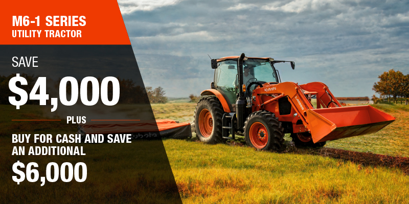 Discount shown available on a new and previously unregistered M8 is $10000.00. Offer cannot  be applied on past transactions, and has no cash surrender value. The 4 year/4,000h warranty on M8 offer is only valid in Canada on products distributed by Kubota Canada Ltd. Discount(s) apply before tax. Offer cannot be applied on past transactions, and has no cash surrender value. Offer valid until 01-12-2026.